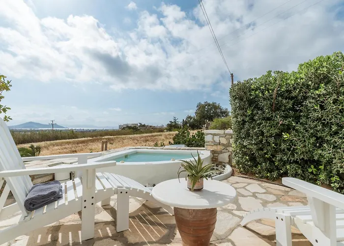 Eine voll ausgestattete Küche hat einen Wasserkocher, einen Kühlschrank und Küchenutensilien. Der Flughafen Naxos ist in 10 Minuten mit dem Auto zu erreichen. Hier gibt es einen Jacuzzi.